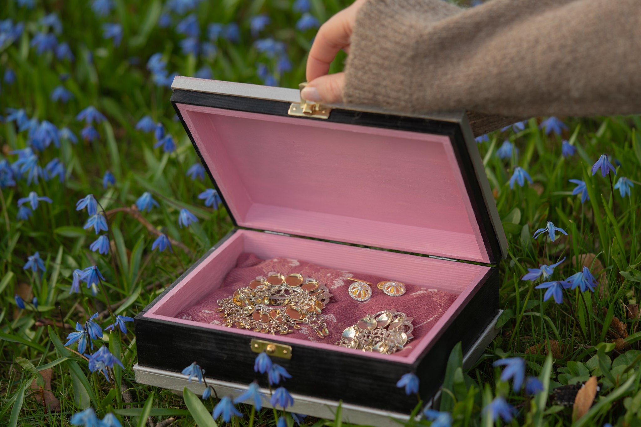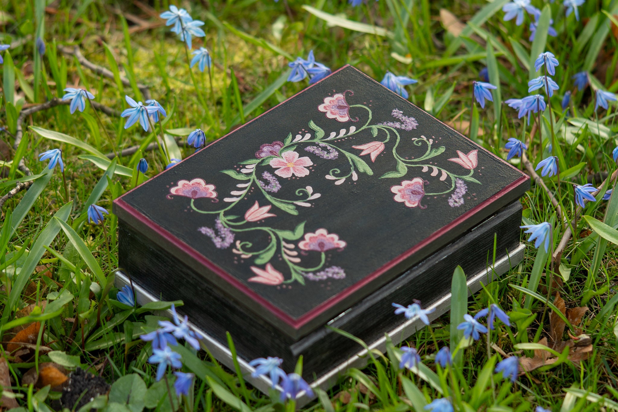 - Håndmalt treeske til oppbevaring av sølv (med mønstre din drakt)
