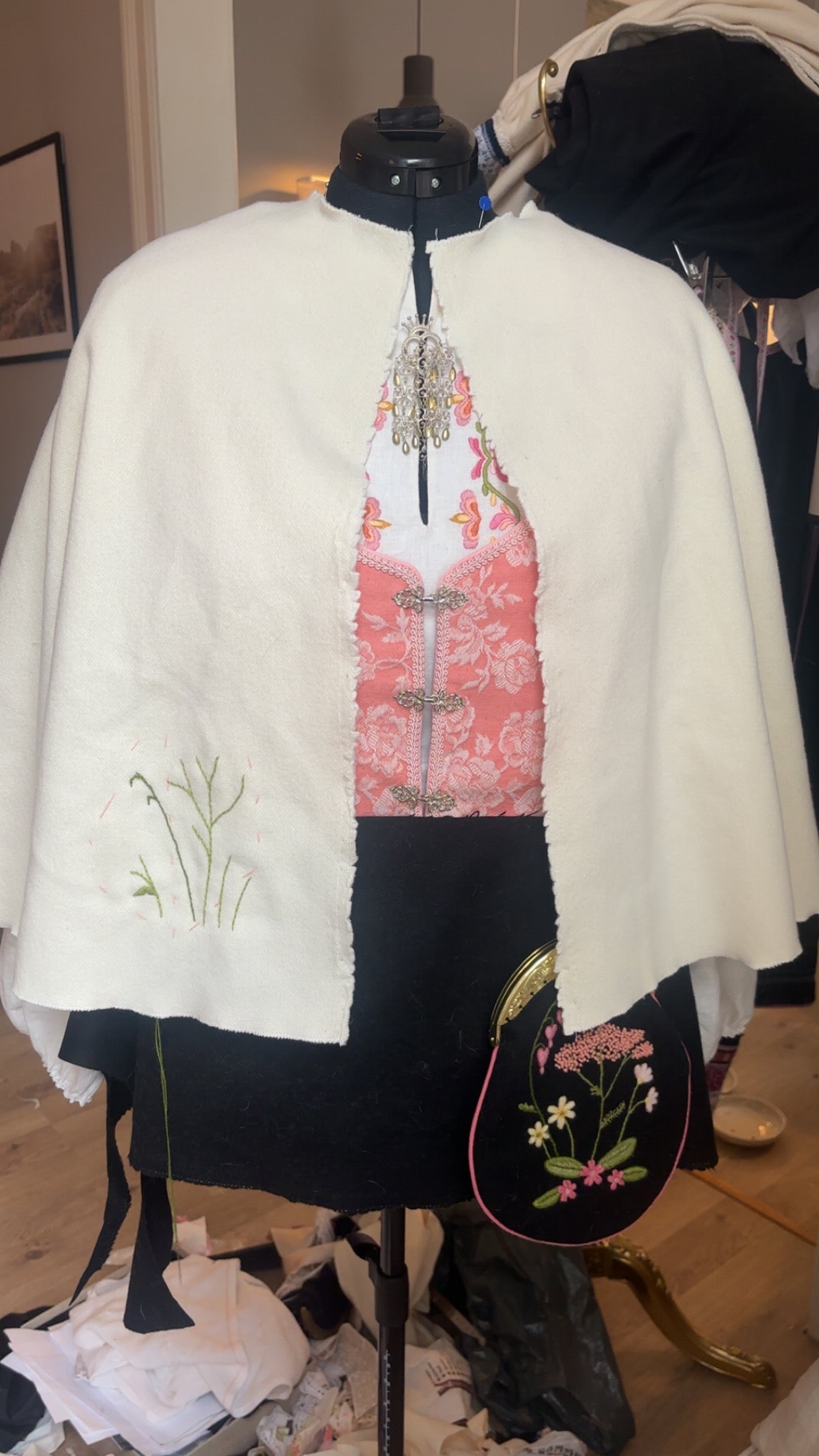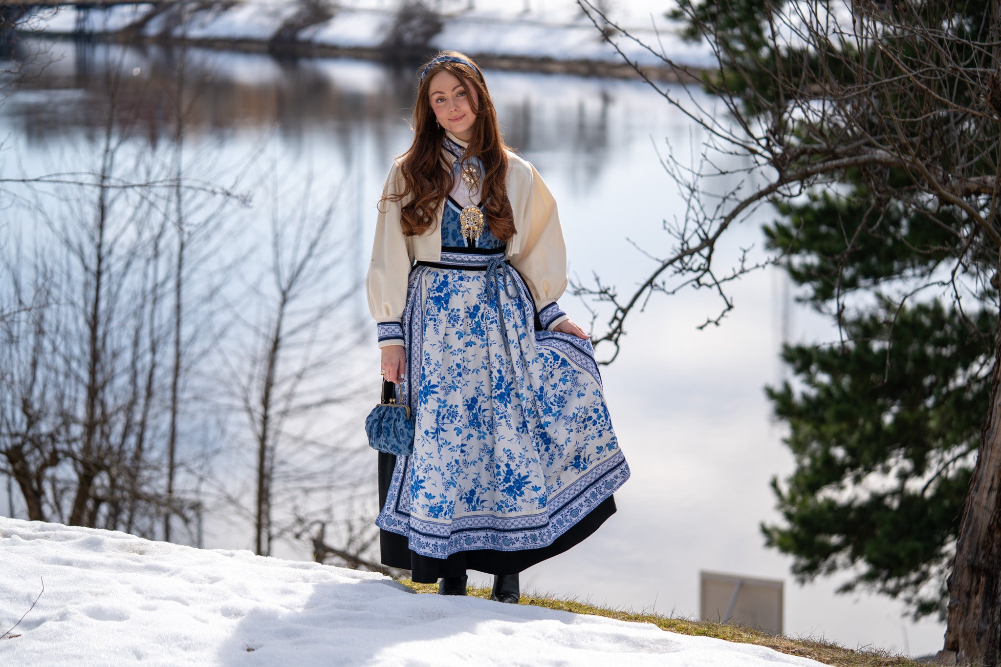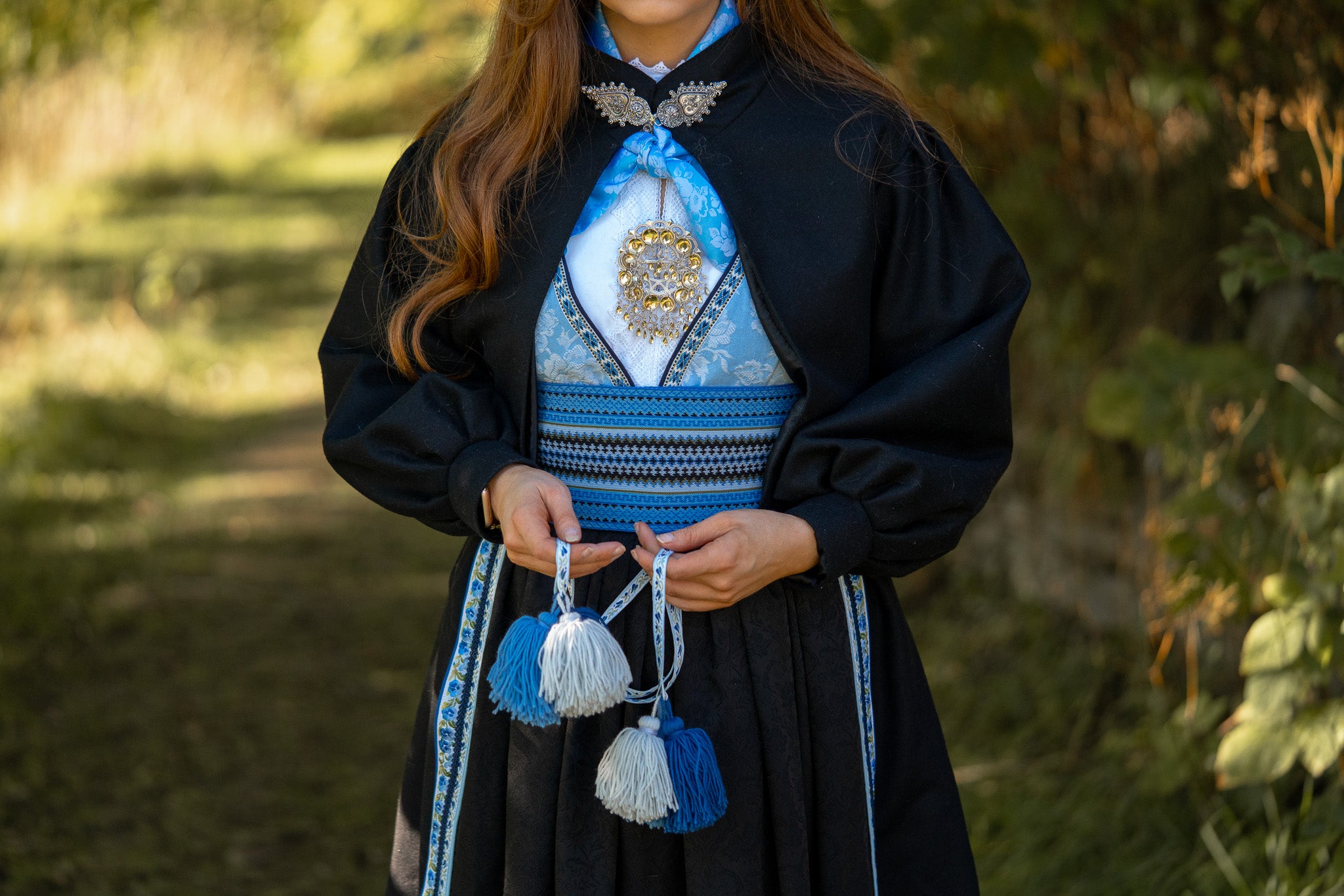 Den første Fantasistakken ble laget i 2019 til meg selv. Jeg hadde lenge ønsket meg en bunad som føltes enda mer personlig ut enn den gamle bunaden min. Jeg vurderte sterkt å bestille fra noen andre men bestemte meg heller for å ta nytte av søm- og motekunnskapene mine og konstruere en selv. Denne er inspirert av de sterke kontrastene i norsk natur og er laget i vakre blåtoner.