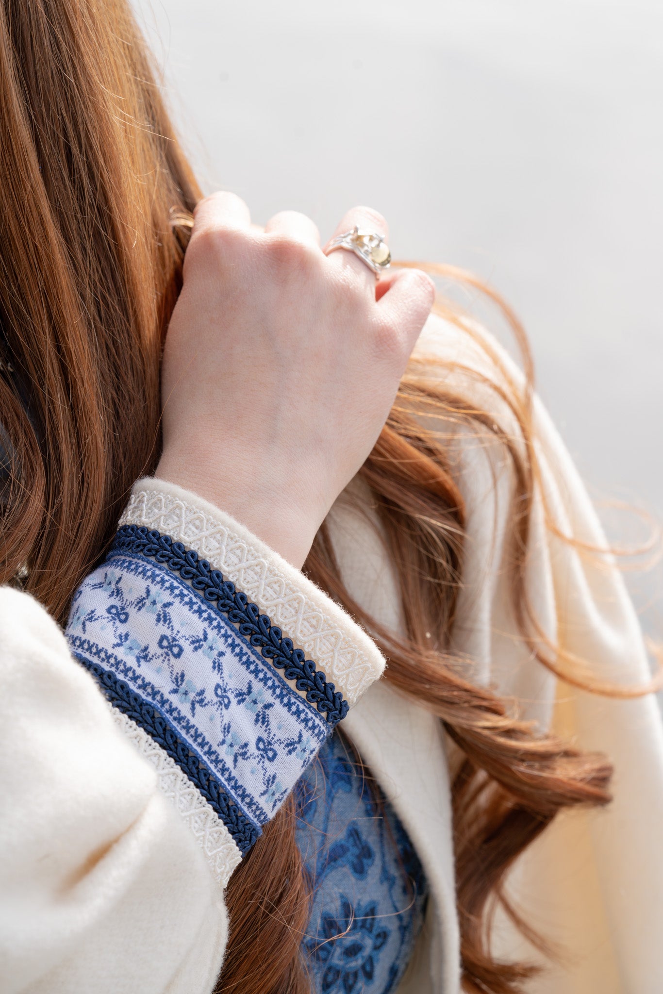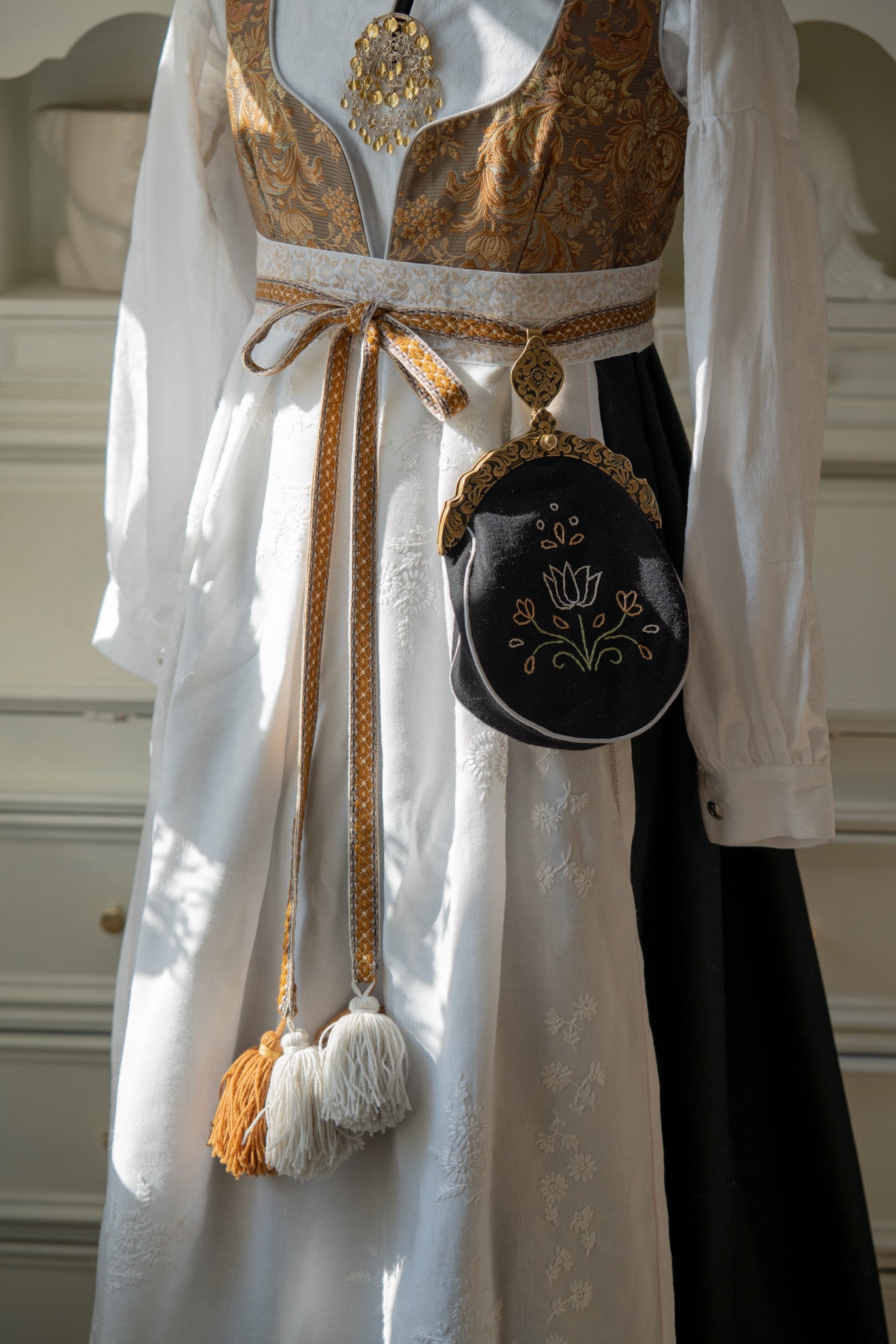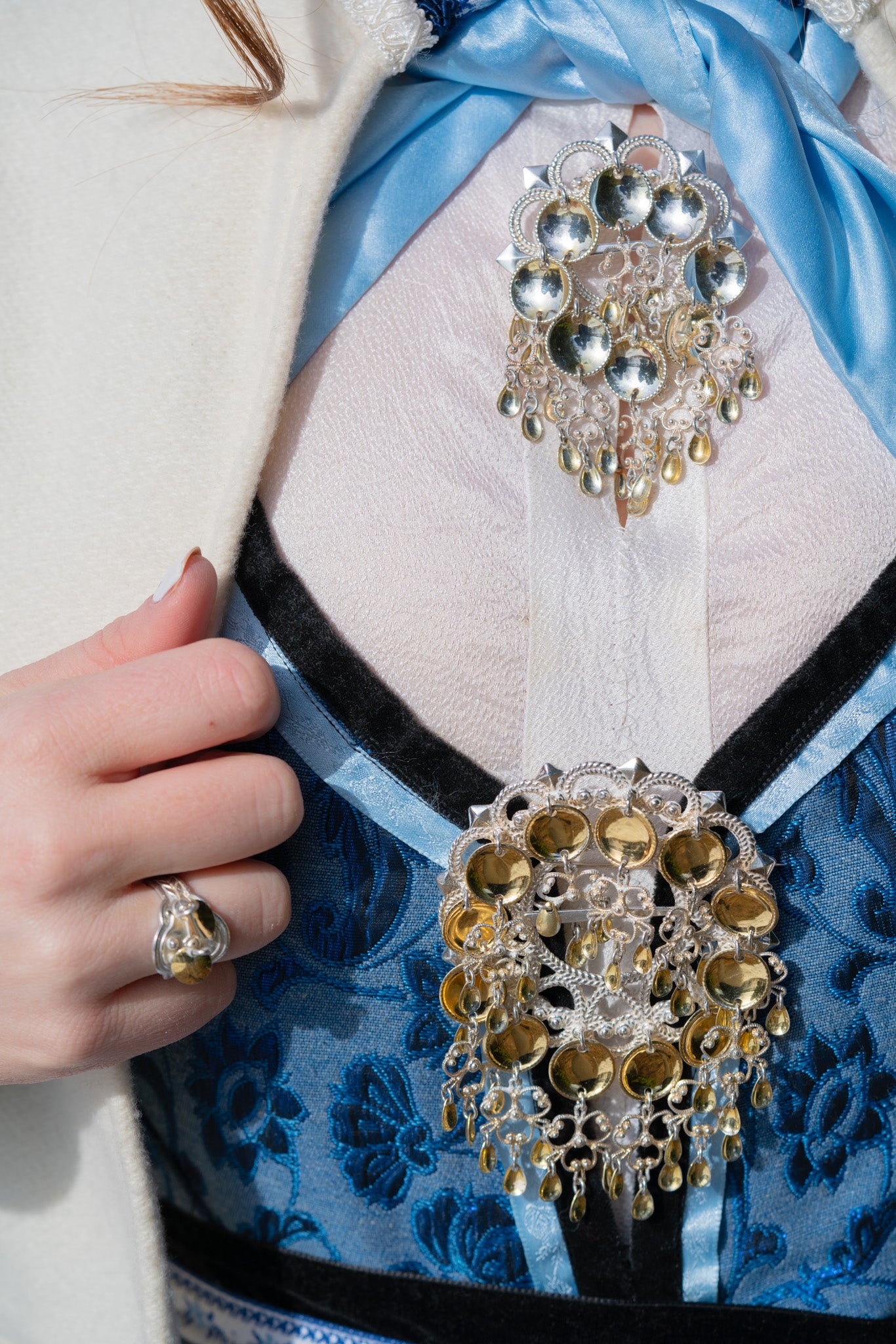 Den første Fantasistakken ble laget i 2019 til meg selv. Jeg hadde lenge ønsket meg en bunad som føltes enda mer personlig ut enn den gamle bunaden min. Jeg vurderte sterkt å bestille fra noen andre men bestemte meg heller for å ta nytte av søm- og motekunnskapene mine og konstruere en selv. Denne er inspirert av de sterke kontrastene i norsk natur og er laget i vakre blåtoner.